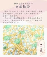 デザインのアクセントとなるのは、京都の伝統技法「捺染」による小花柄。型紙で色を重ねることで輪郭が美しく際立ち、繊細で上品な柄を楽しめます。