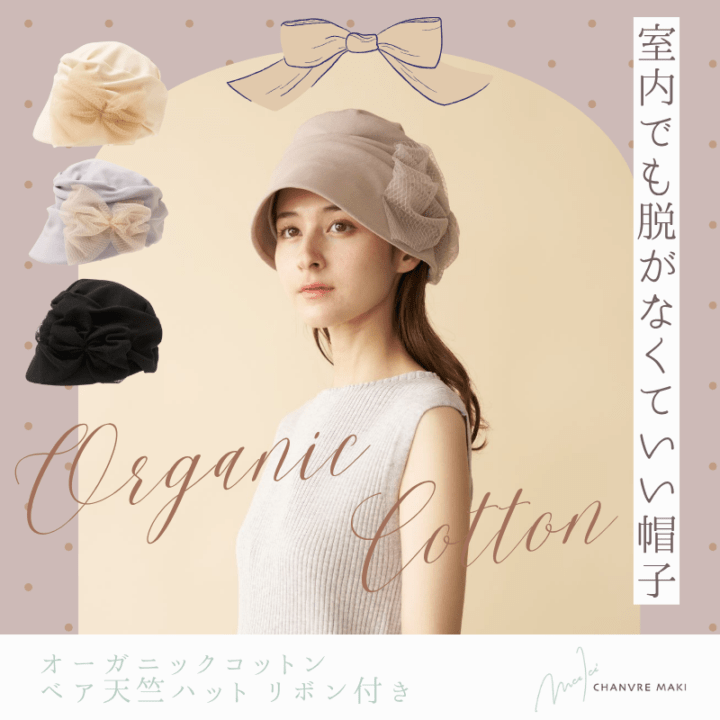 〔シャンヴルマキ〕オーガニックコットンベア天竺ハット リボン付き