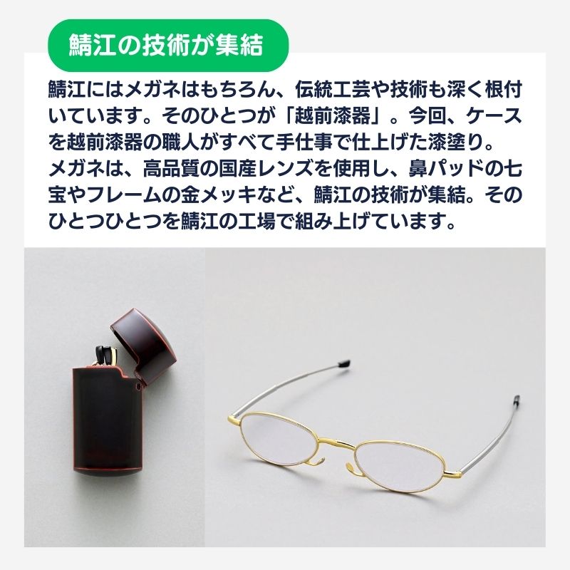 〔WEB限定〕越前漆器×鯖江眼鏡のコラボが実現。小さくて手のひらサイズの折り畳み老眼鏡。メガネとケース、隅々まで鯖江の職人たちの技が光る逸品です。