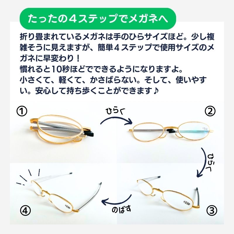 手のひらに収まるコンパクトな折りたたみリーディンググラス。