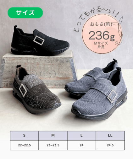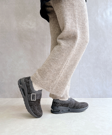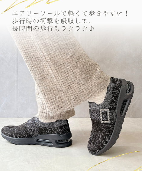軽いエアソールが足裏の負担を軽減し、歩くたびに軽やかさを感じられます。